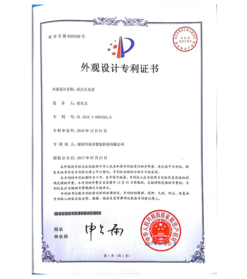 深圳市條形智能科技有限公司位于深圳市寶安區(qū)福永街道鳳凰社區(qū),正式成立于2016年04月,是一家專業(yè)從事顯示類電子產(chǎn)品研發(fā)、生產(chǎn)、銷售的國家高新技術(shù)企業(yè)。